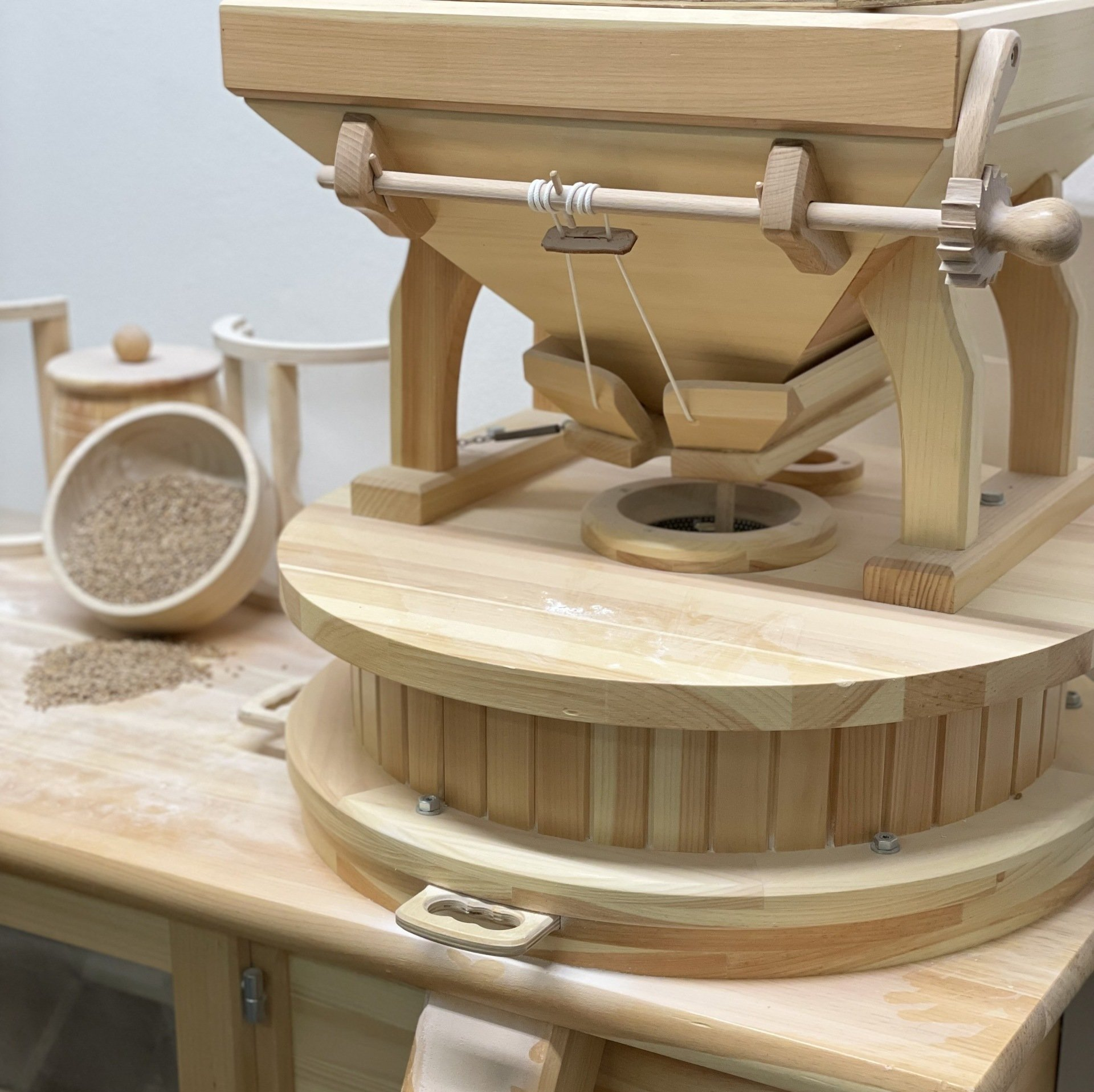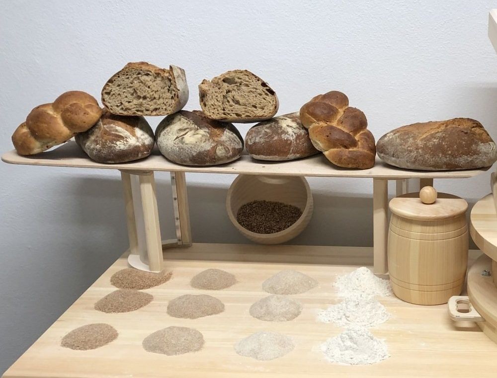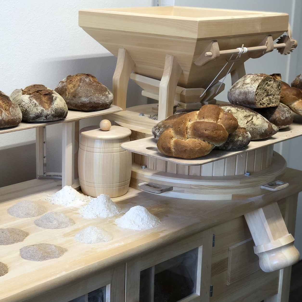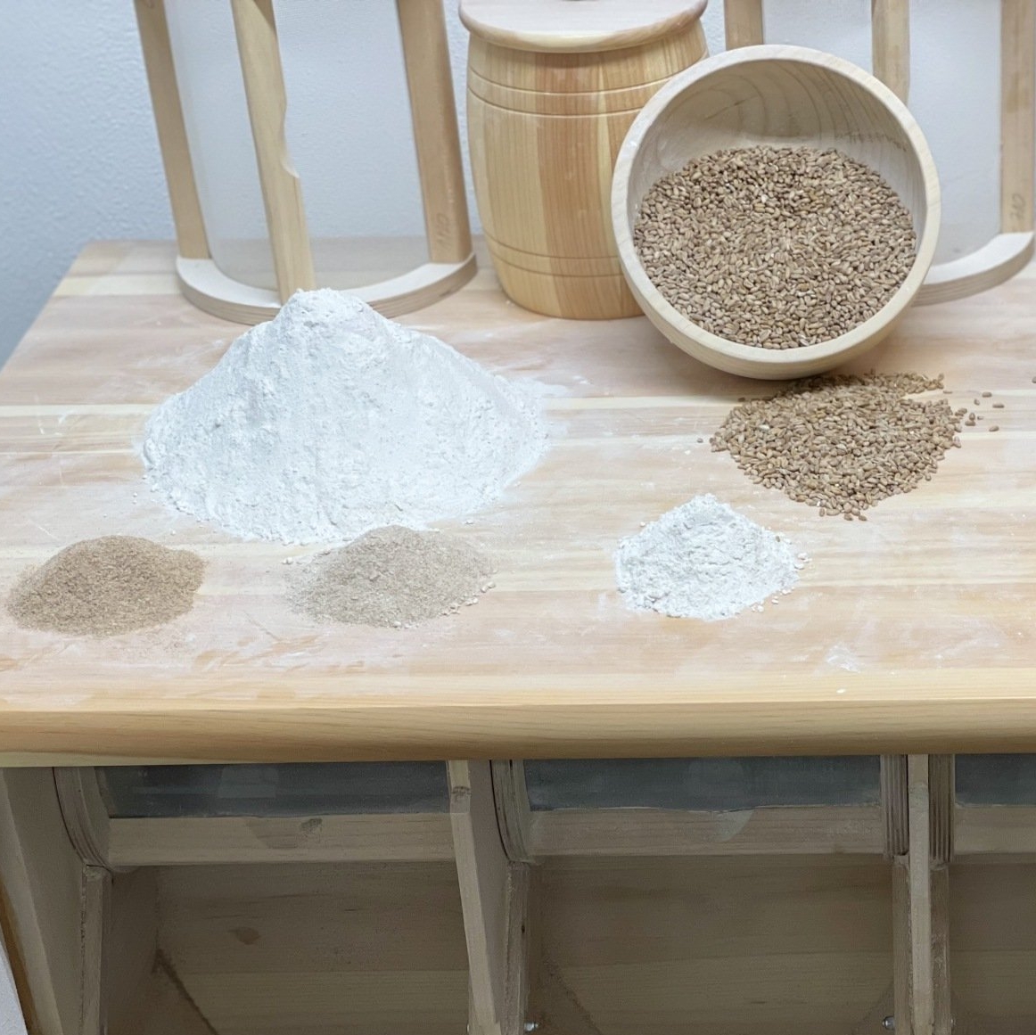 Le farine utilizzate per la realizzazione dei diversi impasti vengono prodotte internamente grazie all'impiego di un mulino che permette di disporre di una materia prima di qualità che può essere opportunamente miscelata.